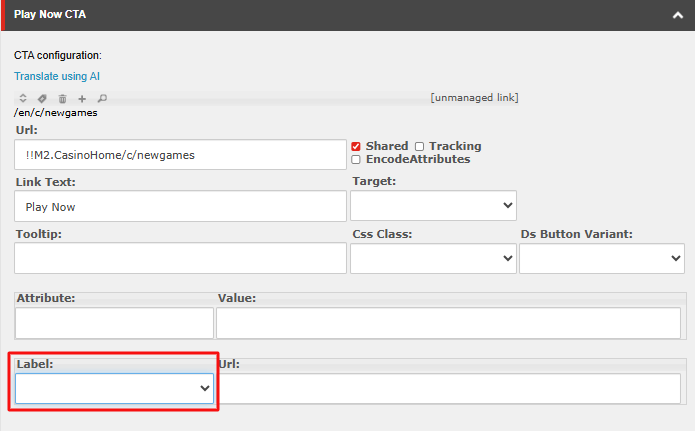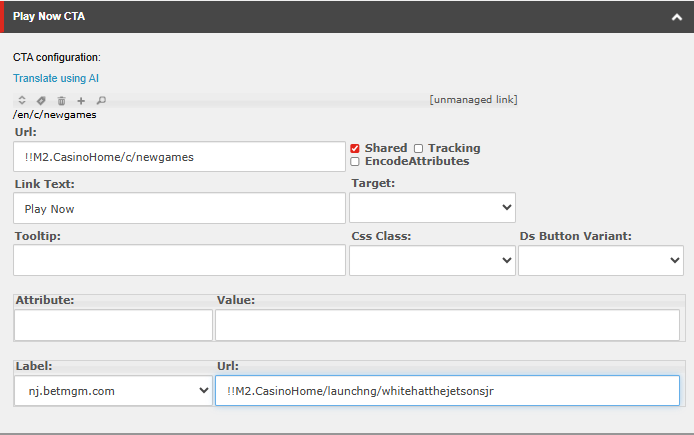 Firstly !!M2.CasinoHome/c/newgames will be the default CTA if it is a Shared Promotion.