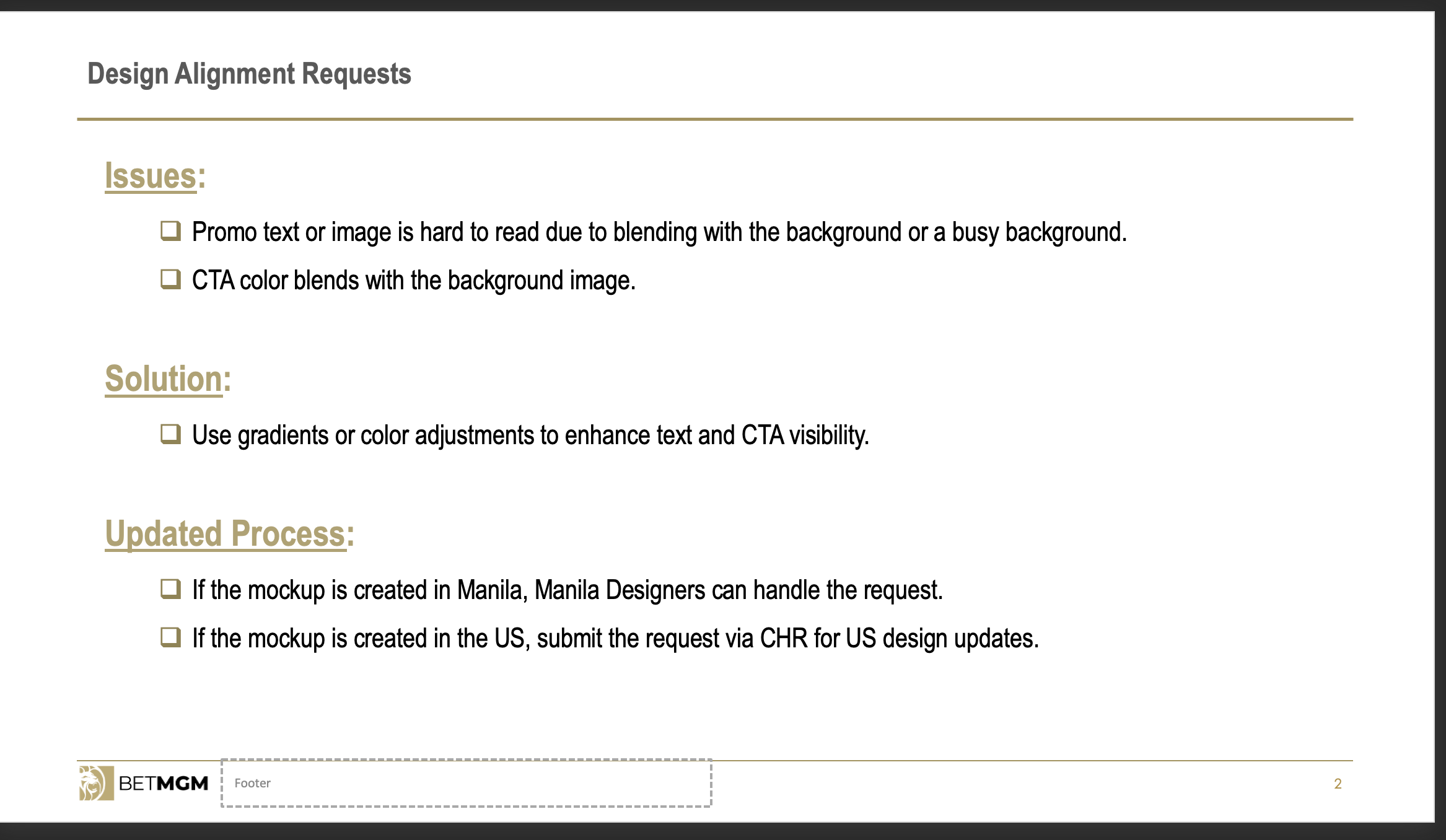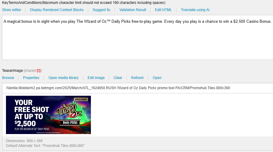 Please be careful to double-check the four (4) highlights and replace or update the values before publishing the Optimized Teaser or Story, ODR Banner, and Promotions Hub Static Tile that will be directing to the MPP, which houses the MPP Game Tile: