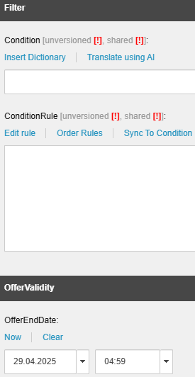 Please both schedule and reschedule the OfferValidity > OfferEndDate, not to be confused with Validity > ValidUpTo, with the same Publishing > Unpublish date, but a time of 4:59 instead for 11:59 PM EST: